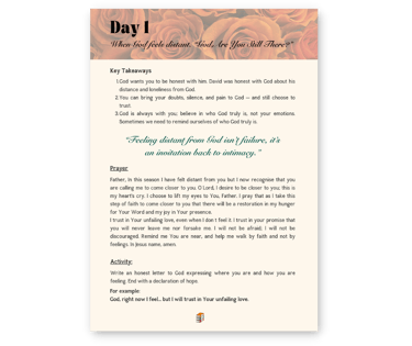 Scripture speak personally to you. Each day invites you to reflect, pray, and realign your heart, not out of obligation, but out of relationship.